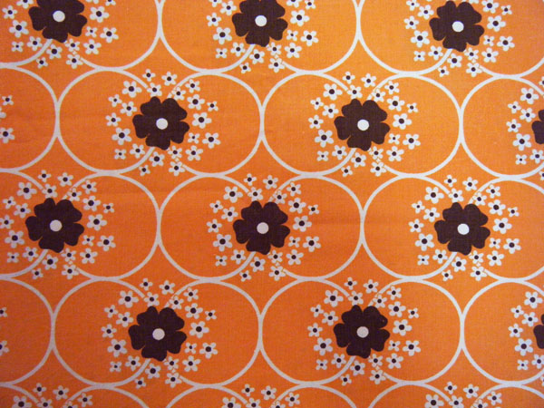 70's★オレンジ系お花とサークル模様(大きなはぎれ)