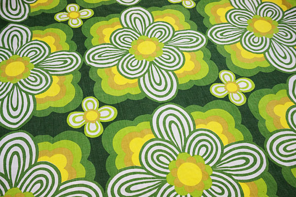 70's★グリーン系の幾何学フラワー(はぎれ)