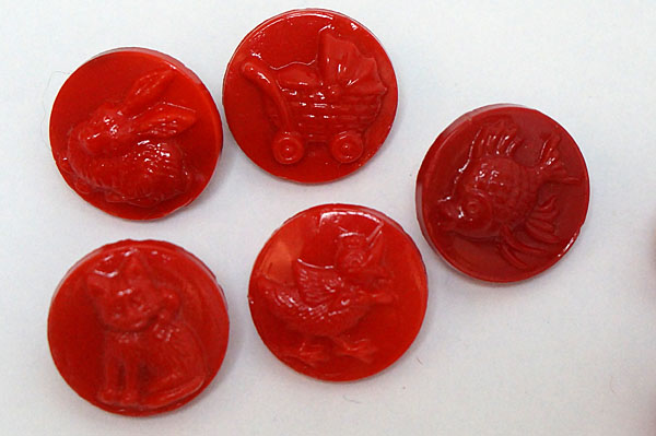 赤い子供用ガラスボタン10個セット