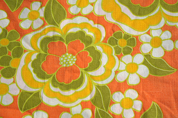 70's★鮮やかオレンジ系フラワー(ピローケース)