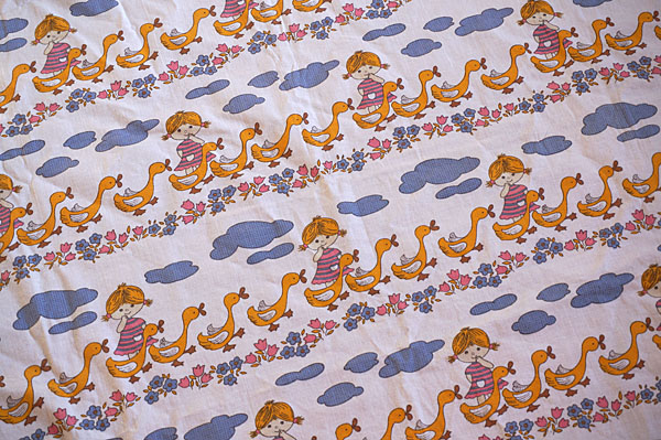 ドイツ70's◆アヒルの群れと女の子(はぎれ大)