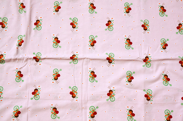自転車に乗ったテントウムシ(ピンク系)生地 [戻る]