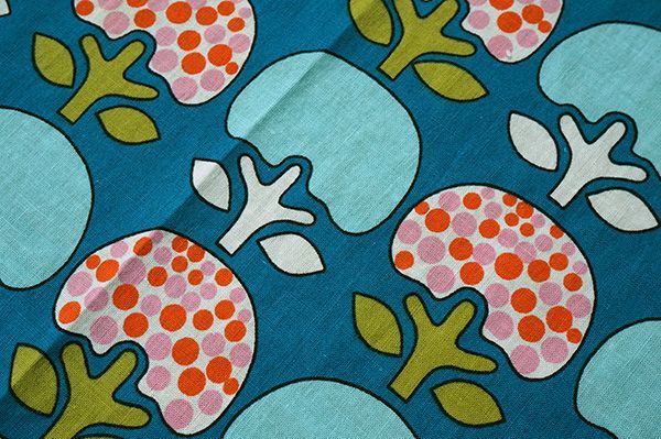 70's◆個性的な木?リンゴ?花?の生地(はぎれ)