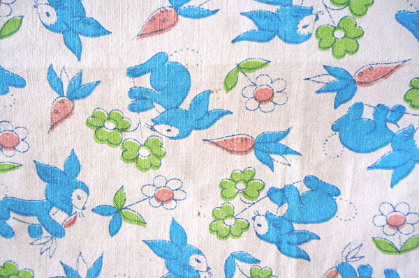 DDR★ウサギと花とニンジン(ブルー系)はぎれ大