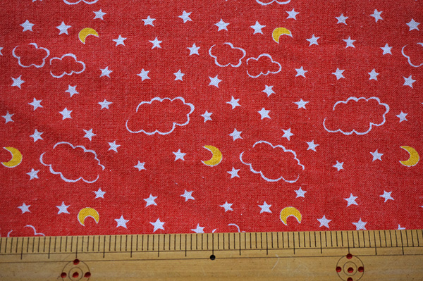 70's◆雲・星・月が小さく描かれたファブリック(赤)はぎれ [戻る]
