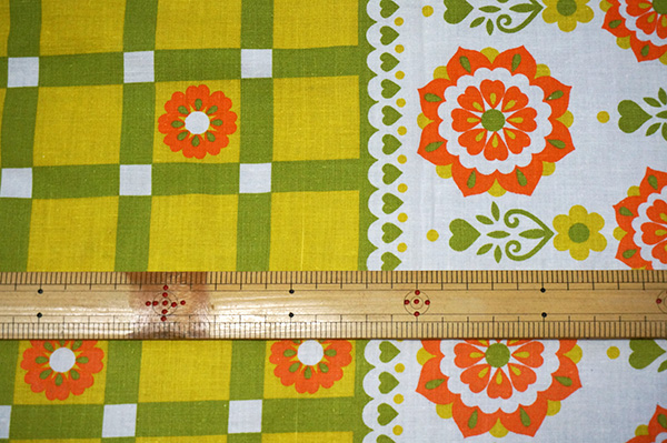 ドイツ70's★オレンジ×若草色の花柄(はぎれ)