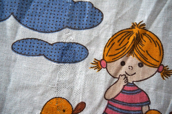 【未使用・70's】アヒルの群れと女の子(はぎれ大)