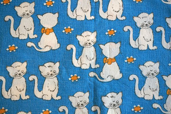 70's◆意地悪っぽい猫と花のピローケース(水色)