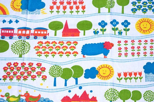 【グラジエラ】70's電車・動物・太陽(はぎれ大)