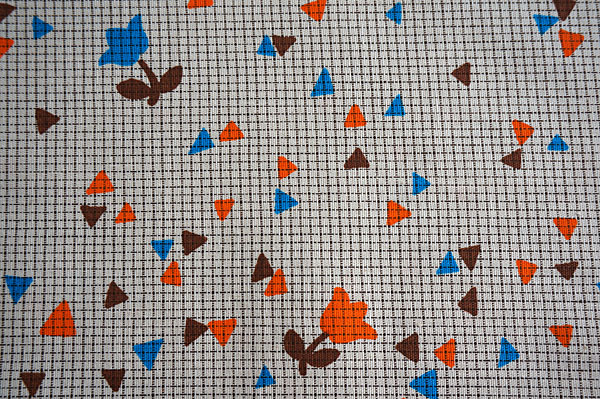 ▲▼格子柄に、三角と花ファブリック▲▼(はぎれ)