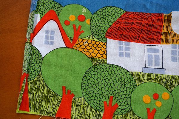 70's★子供たちとアヒルの群れ(ブルー系)はぎれ