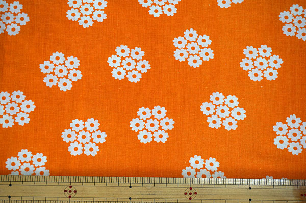 70's★オレンジ地に白い花(大きなはぎれ) [戻る]