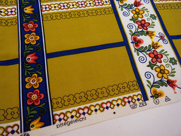 【未使用品】黄土色+藍色のシブイ花柄(はぎれ) [戻る]