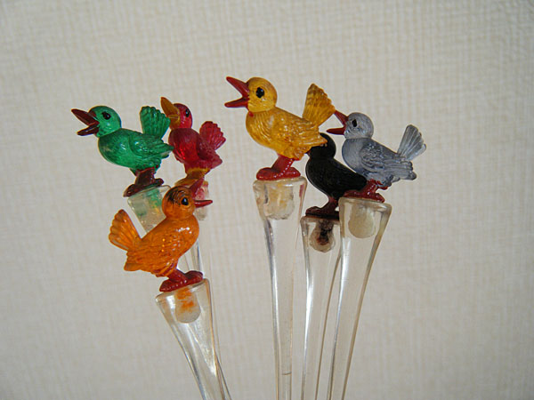 70's★カラフルな小鳥のピック6本(スタンド付)