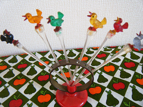 70's★カラフルな小鳥のピック6本(スタンド付)
