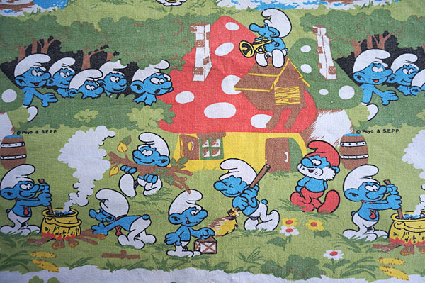 ドイツヴィンテージ★スマーフの森のファブリック(はぎれ大) [戻る]