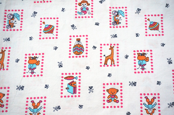DDR★切手みたいに配置された可愛いイラスト生地のピローケース