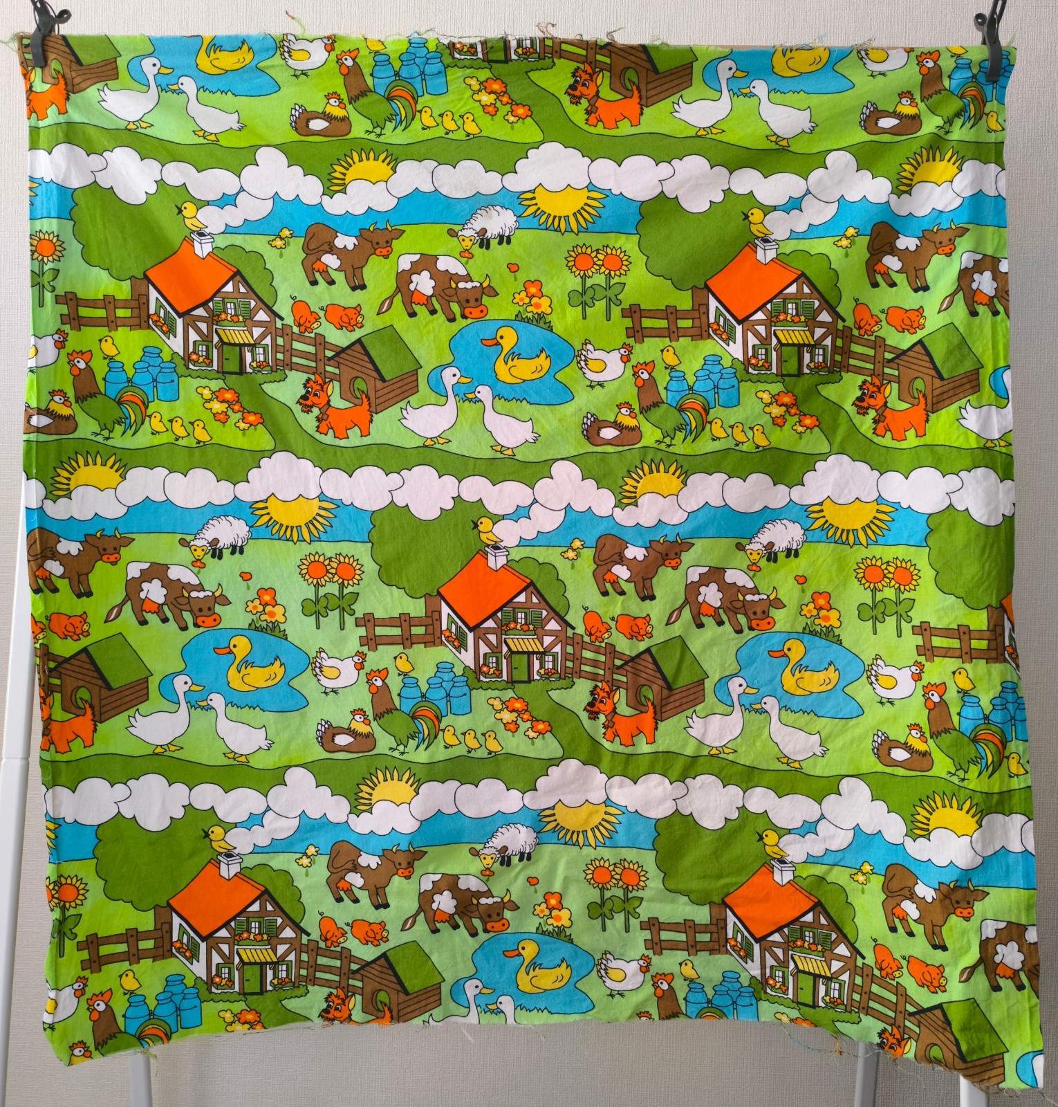 ドイツ70's●明るく楽しい農場のファブリック(訳ありはぎれ)