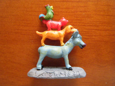 童話【ブレーメンの音楽隊】小さな置物 [戻る]