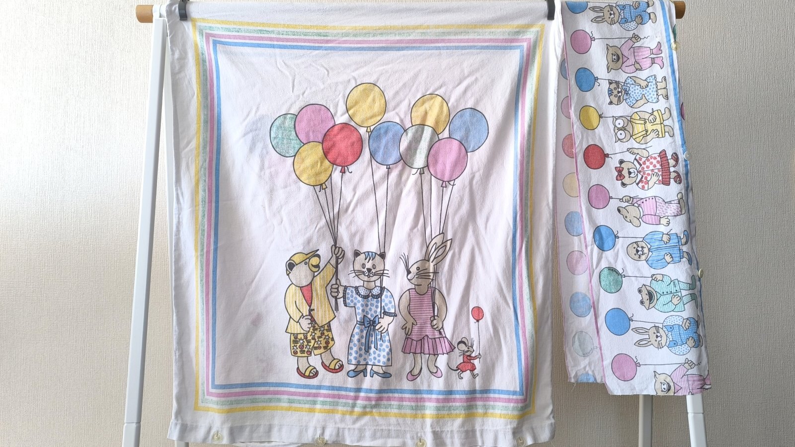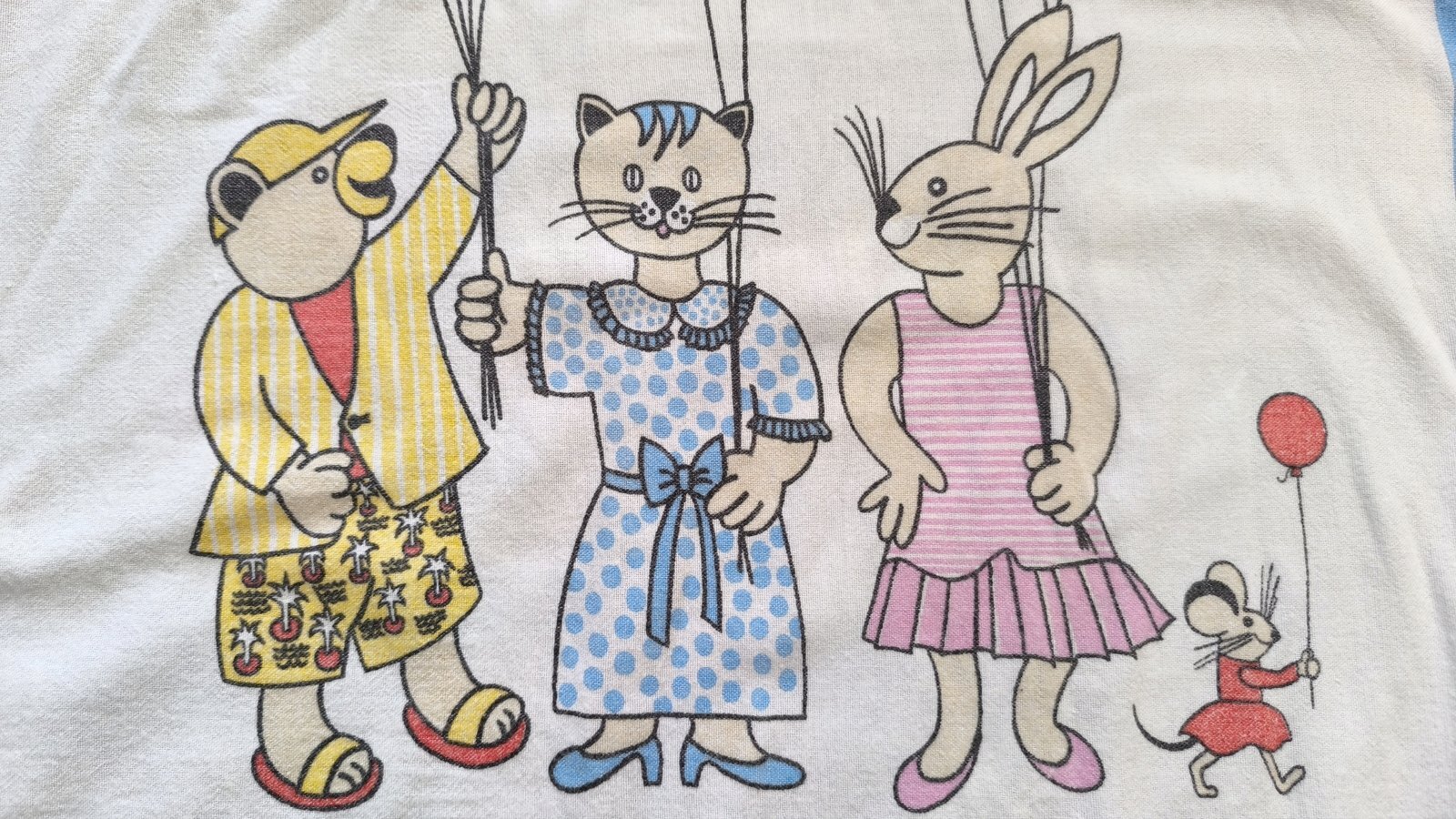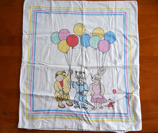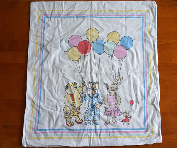 ドイツの特大サイズなので(日本でよく流通してるクッションが4つ入るくらいの大きさ)、ハンドメイド資材としておススメしたいお品です。イラストは両面あるので、糸を解いて子供部屋の装飾×2や、通園・通学グッズにどうぞ♪
