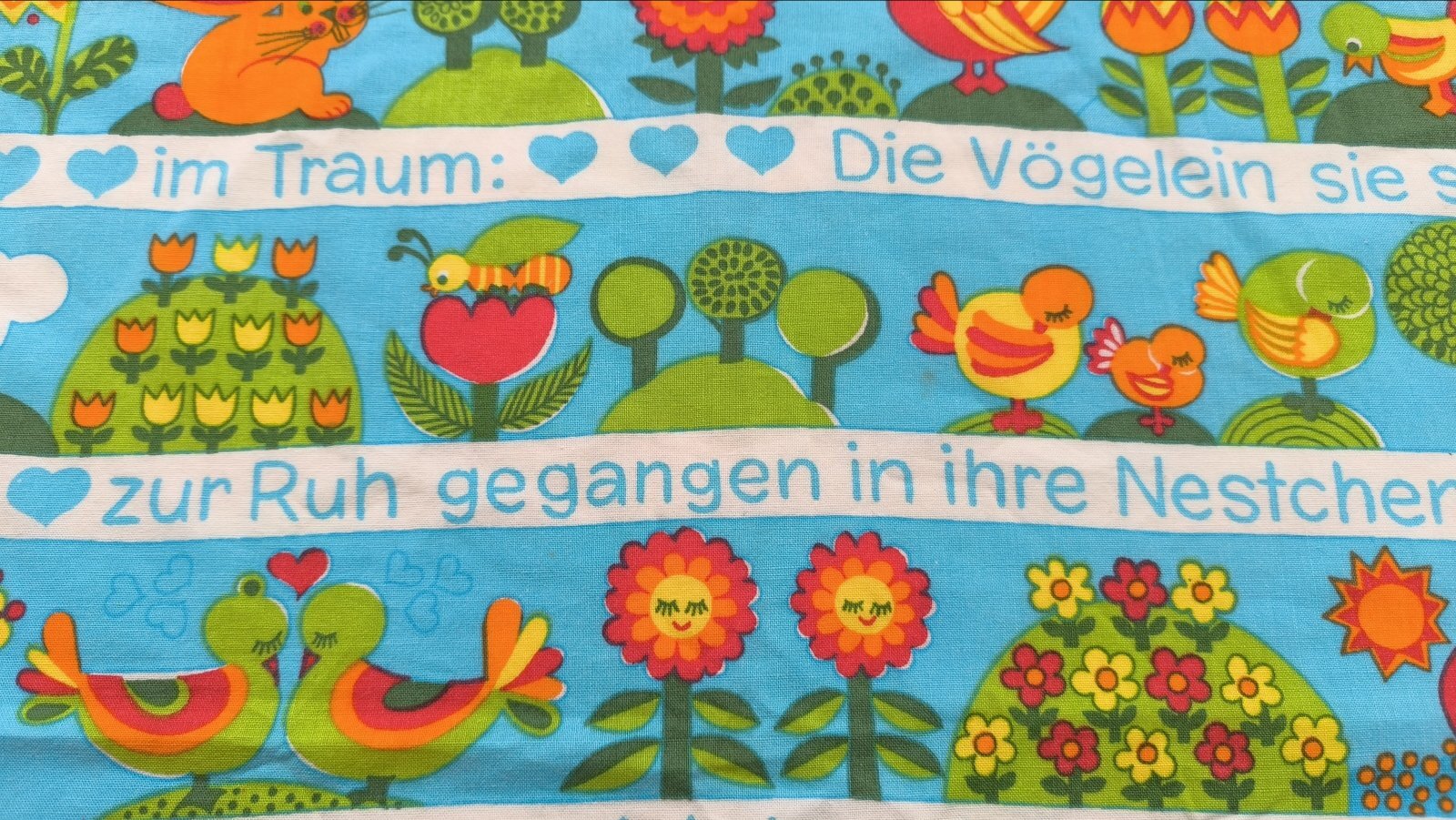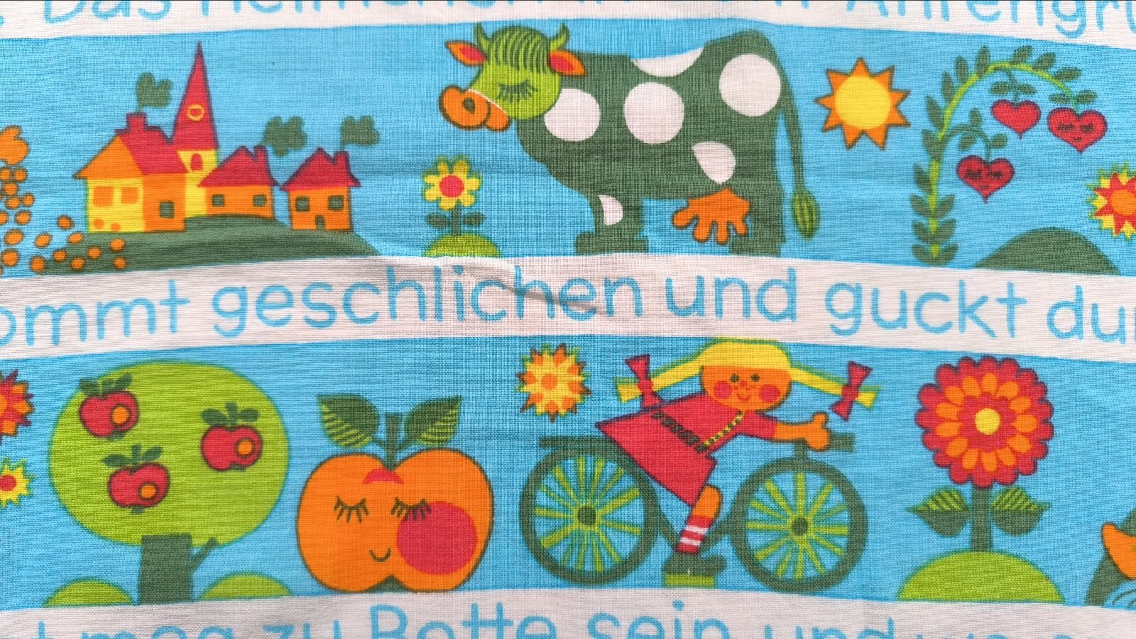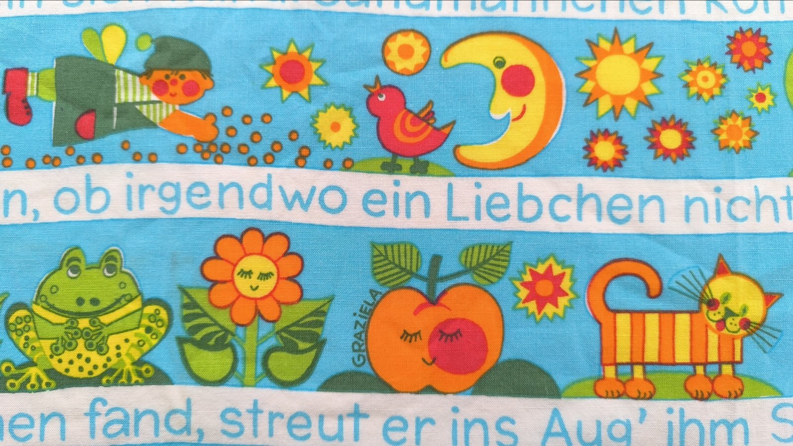 猫・鳥・月・リンゴ・男の子・女の子・花・牛・カエルetc.、可愛いモチーフがたくさん描かれた、夢のあるデザインです。