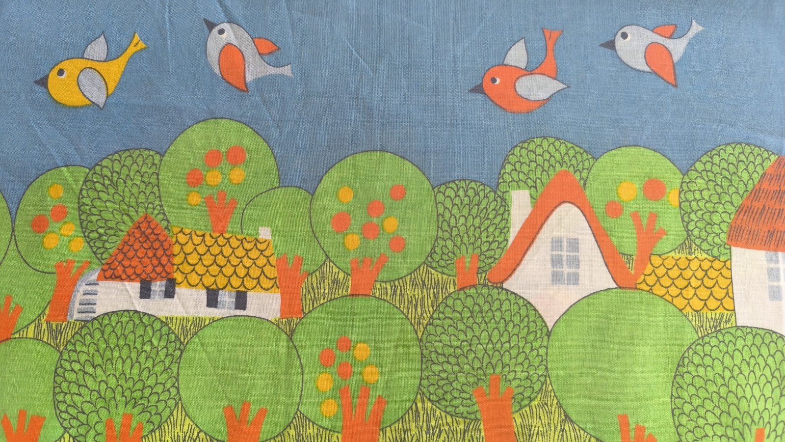 アヒル、飛ぶ鳥、家、花、木、雲・・・。どれも素敵!