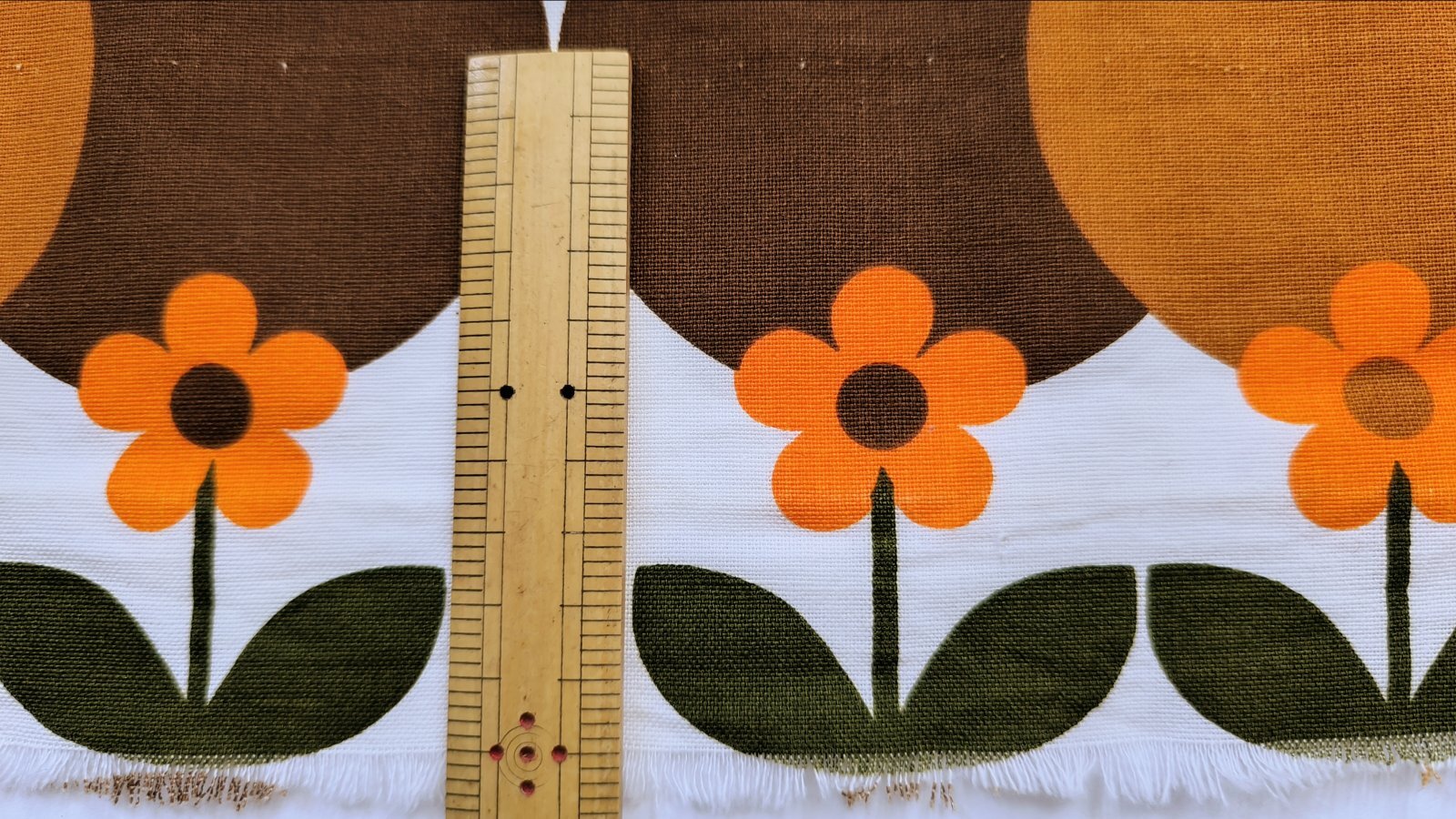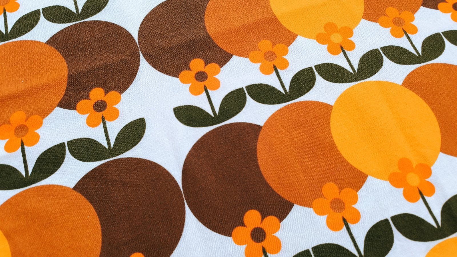 北欧ビンテージ★大きな暖色系サークル&花のファブリック