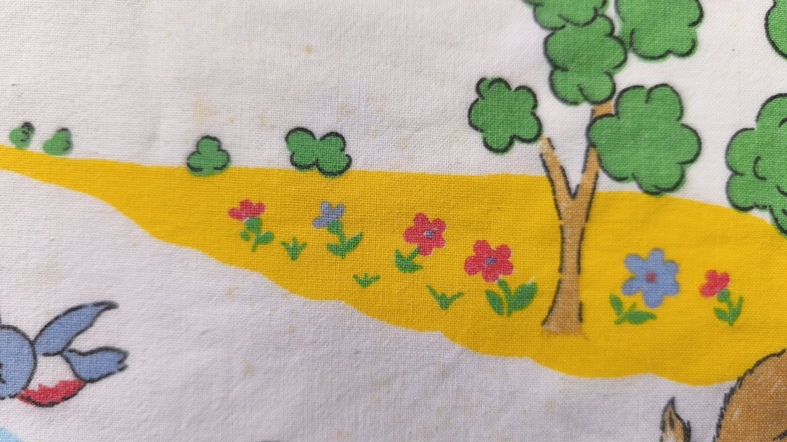とっても可愛いモチーフが満載の、古いドイツのベッドセットのピローケースです。