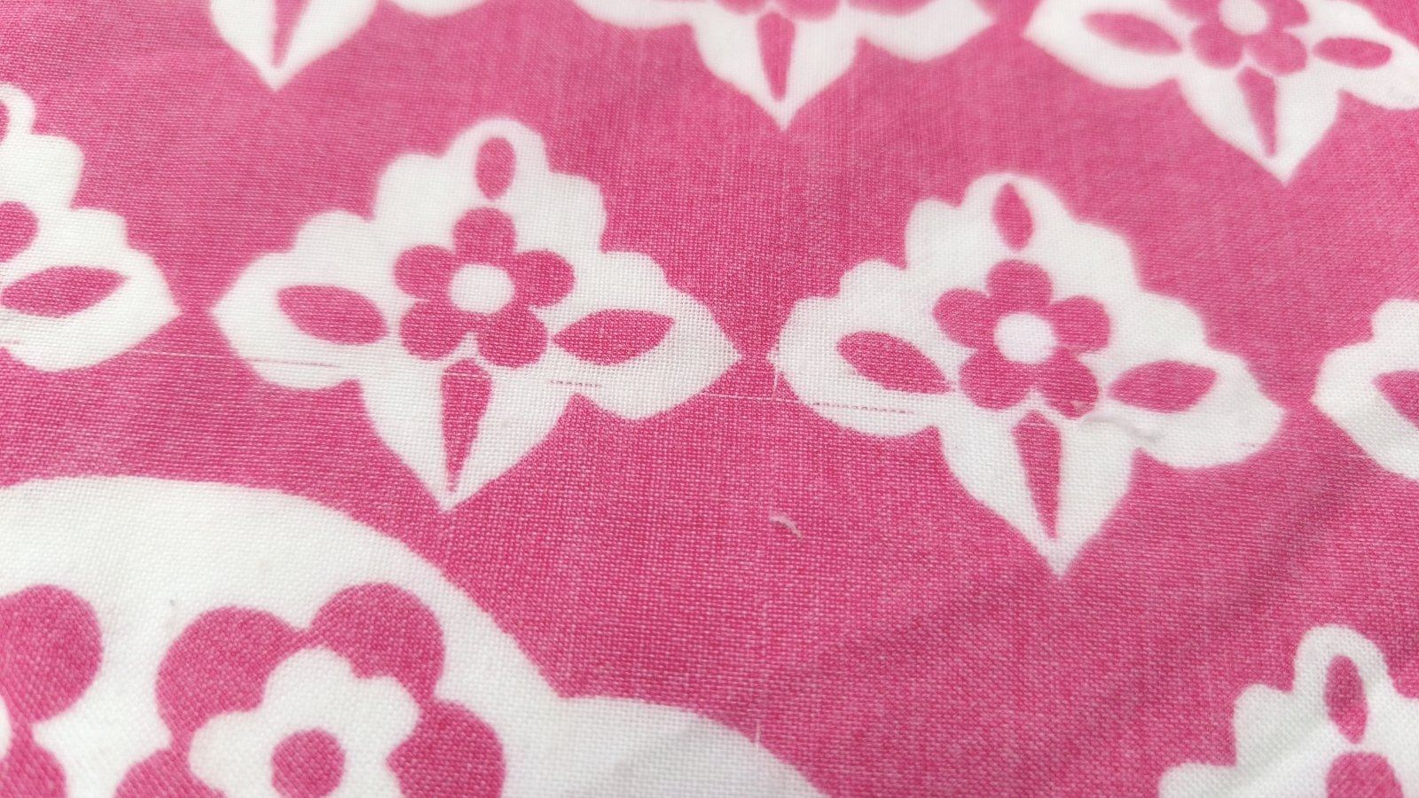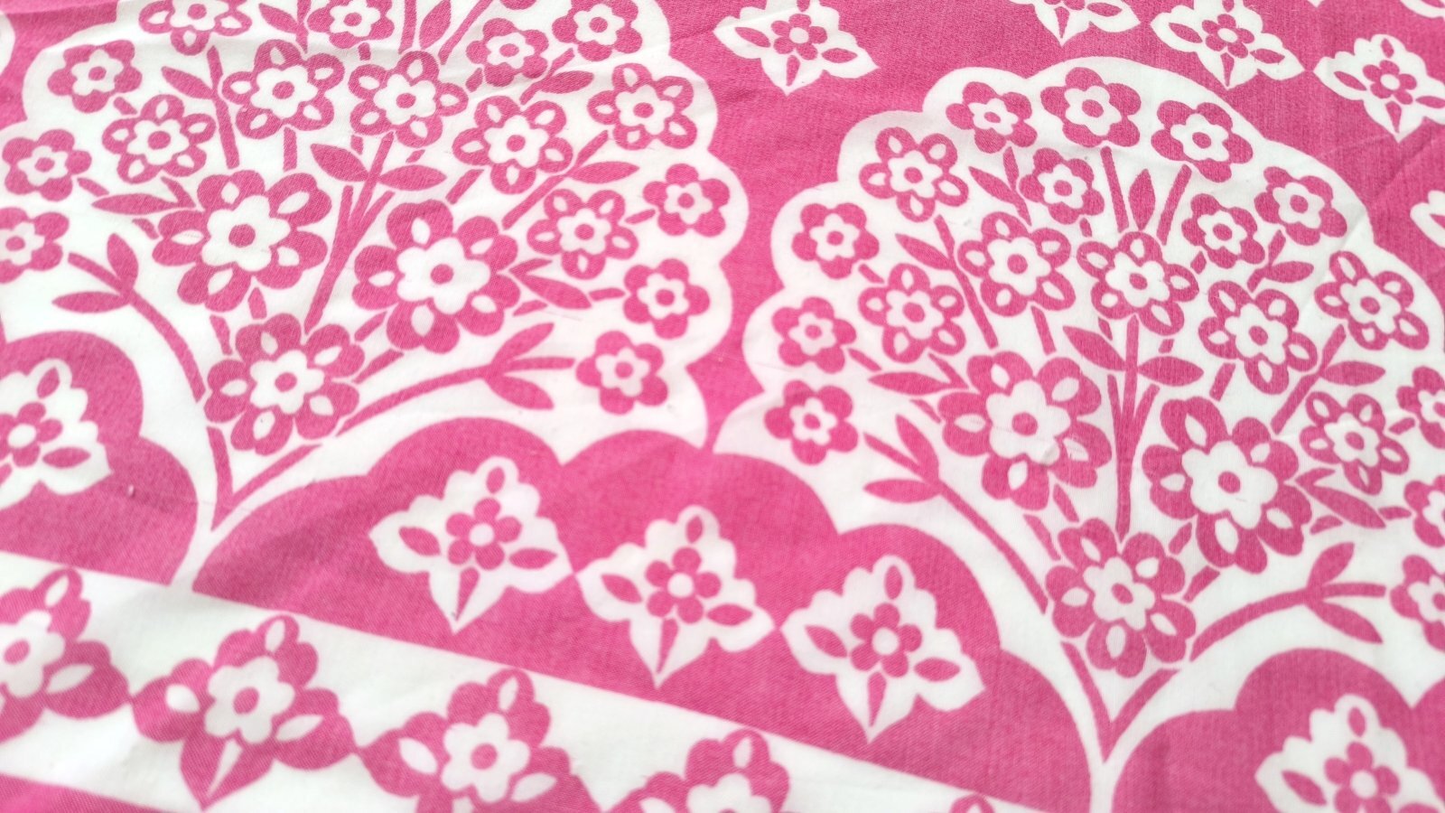 ホーム | 手芸グッズ > 生地・はぎれB【特価】ピンク×白の、切り絵風お花柄ハギレ