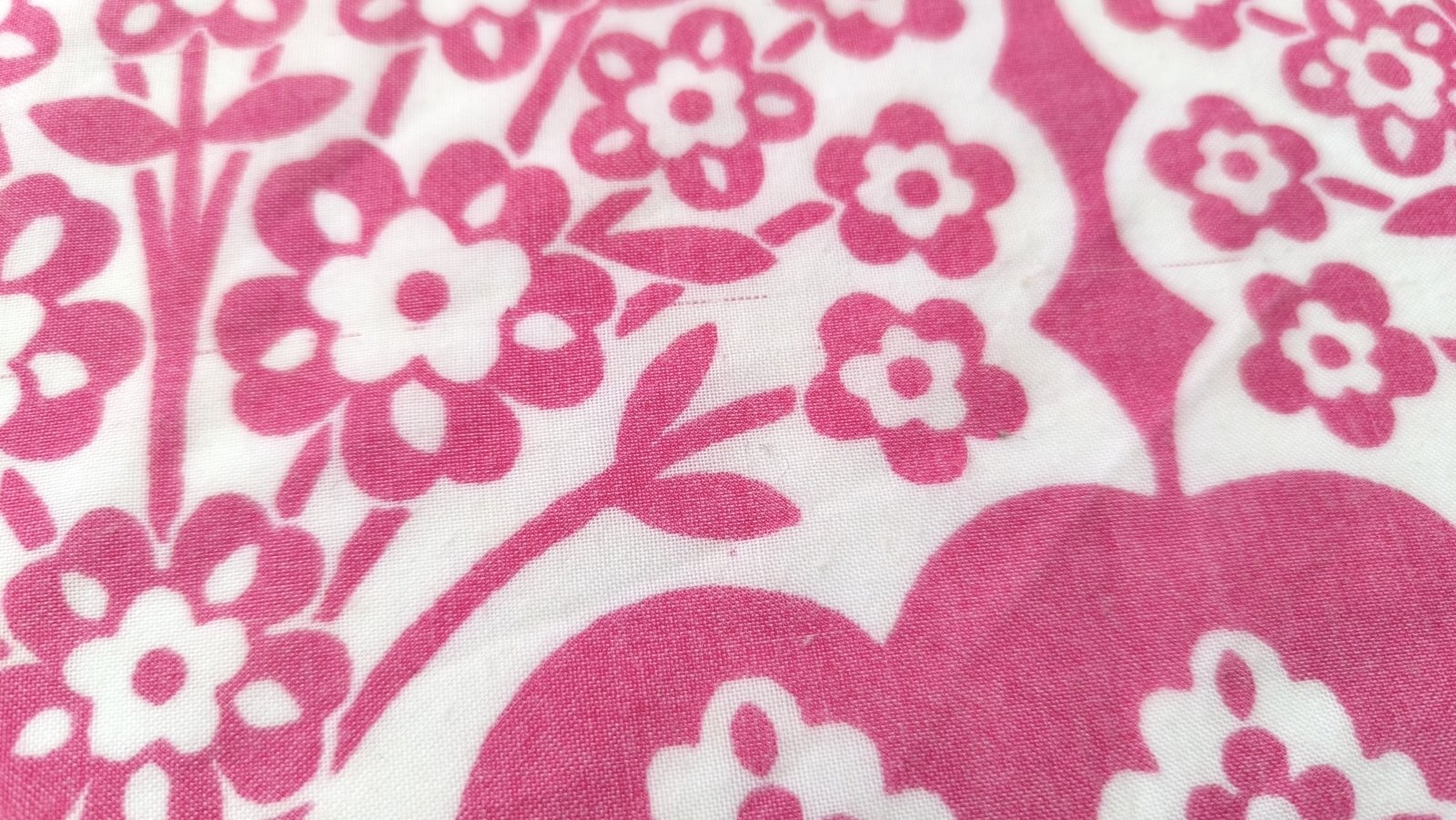 【特価】ピンク×白の、切り絵風お花柄ハギレ